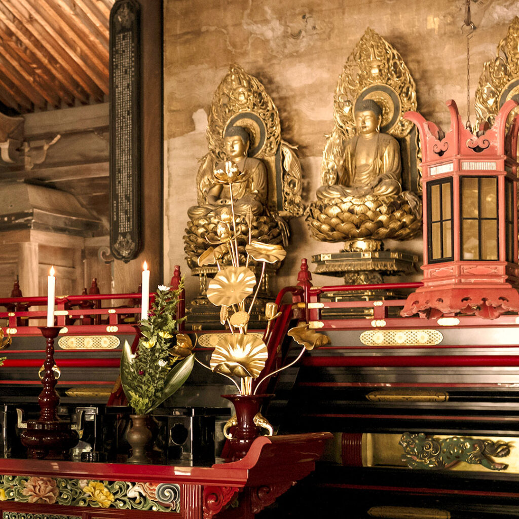 Takenaka’s master carpenters revived traditional methods. Wood beams are fitted without nails, gently curving mukuri roofs evoke the elegance of courtly residences, and textured walls recall the historic Jurakudai palace of Toyotomi Hideyoshi. Kinpaku gold leaf accents catch the faintest glimmers of light without ever intruding on the quiet.